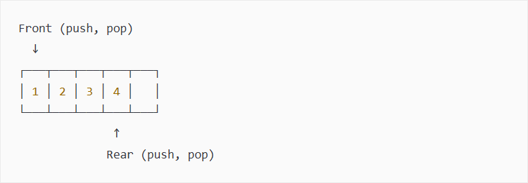 front와 rear를 통해서만 접근이 가능하므로, 중간 데이터 접근이 불가능하다. 삽입과 삭제가 양쪽 끝에서 일어나기 때문에, 특히 동적 메모리 할당이 빈번하게 발생할 경우 성능 저하가 더 두드러질 수 있다.