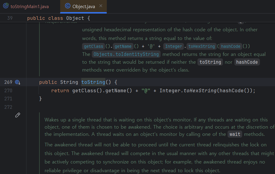 자바에서 모든 클래스는 Object 클래스를 상속받는다. 기본적으로 Object 클래스의 toString() 메서드는 '클래스 이름@메모리 주소' 형식으로 객체 정보를 반환한다. 그러나 toString() 메서드를 오버라이드하면, 객체를 출력할 때 클래스 이름과 메모리 주소 대신, 사용자가 정의한 형식으로 객체의 정보를 출력한다.