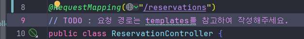 저걸 추가함으로써 이 컨트롤러에 있는 모든 요청의 기본 경로가 `/reservations`로 시작하게 된다.