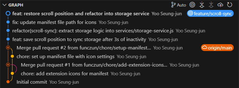 들어가며항상 들려오는 말이 있다."아무리 능력이 뛰어난 사람이라도 같이 일하기 어려운 상대는 기피하게 된다." 개발에서 말하는 협업은 단순히 사람 대 사람으로서 말이 잘 통하느냐를 의미하지 않는다.개인 프로젝트지만, 마치 협업인 것처럼 행동하자.깃 브랜치란 무엇이며, 왜 있는 걸까?커밋은 어떻게 하는 게 좋을까?브랜치 관례와 커밋 관례를 찾아보며, 이번 프로젝트에서 최대한 적용해보려 한다.리포지토리아래 깃허브 링크를 남겨두겠다.기획부터 개발, 배포, 마케팅까지 고독하지만 재미있는 기록이 될 것이다. GitHub - funczun/where-was-iContribute to funczun/where-was-i development by creating an account on GitHub.github.co..